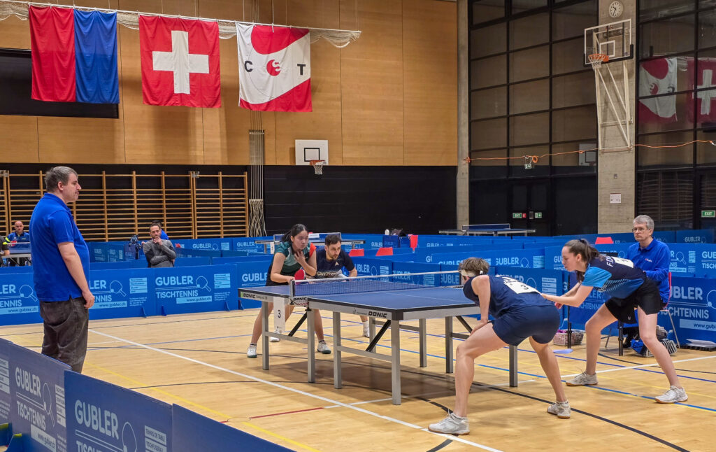 In der unteren Tableauhälfte waren gleich sieben unserer SpielerInnen am Start. Leider war für Samir und Partnerin Mara Aebersold (Wetzikon) das erste Spiel auch das Letzte. Dasselbe galt auch für Seraina und Ben Meier (ABTT), die in einer durchaus sehenswerten Partie an Ilvi und Patrick Jund (Wädenswil) scheiterten, welche wiederum anschliessend gegen Lars und U13-Europameisterin Michelle Wu (Uster) chancenlos untergingen.
