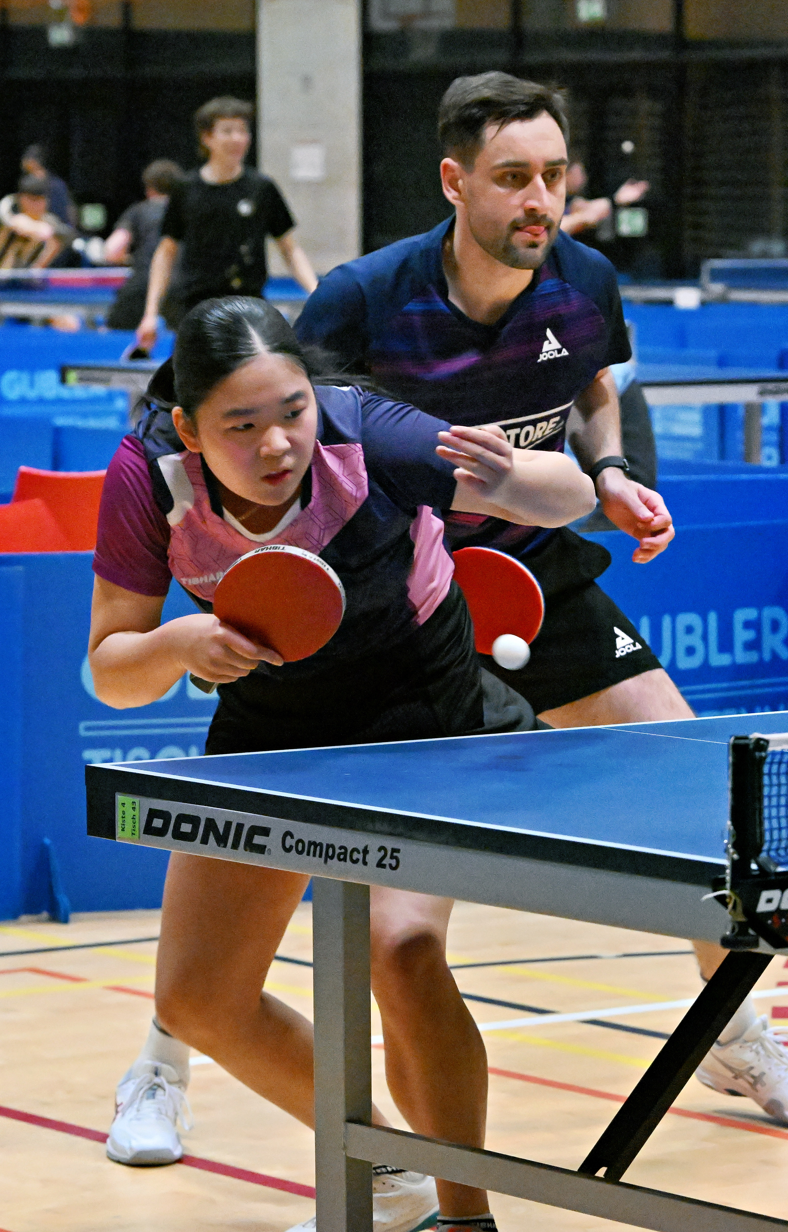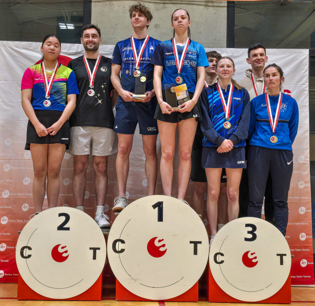 Auch Jill und Noah starteten, mal wieder, mit einem Duell gegen alte Bekannte in die SM, nämlich gegen Adèle, die mit Vereinskollege Adrian Raschle spielte. Jill und Noah starteten hervorragend und gingen mit 2-0 in Führung, ehe die Affolterner auf beeindruckende Weise zurückschlugen und einen Entscheidungssatz erzwangen. In diesem fanden Noah und Jill aber wieder das Erfolgsrezept und setzten sich mit 11-9 doch noch durch! Leider war das Achtelfinale für die zwei Freunde auch bei ihrer dritten gemeinsamen SM Endstation. An Spuhler/Hu (Rio-Star Muttenz) gab es für die Zürcher kein Vorbeikommen und sie verpasste das Traum-Viertelfinale gegen Lars/Michelle. Diese machten es aber glücklicherweise dann besser. In vier hart umkämpften Sätzen setzten sich der YSZ’ler und sein Schützling durch und bejubelten ihre Qualifikation für den zweiten Turniertag. Für Michelle war es die erste Medaille (von vielen) bei der Elite (ihre erste im NW-Bereich kam ebenfalls an der Seite eines YSZ’lers). Für Lars, der in den letzten Jahren mit Long COVID zu kämpfen gehabt hatte, war es die erste SM-Medaille seit 2020, damals im Herren Doppel mit Filip.