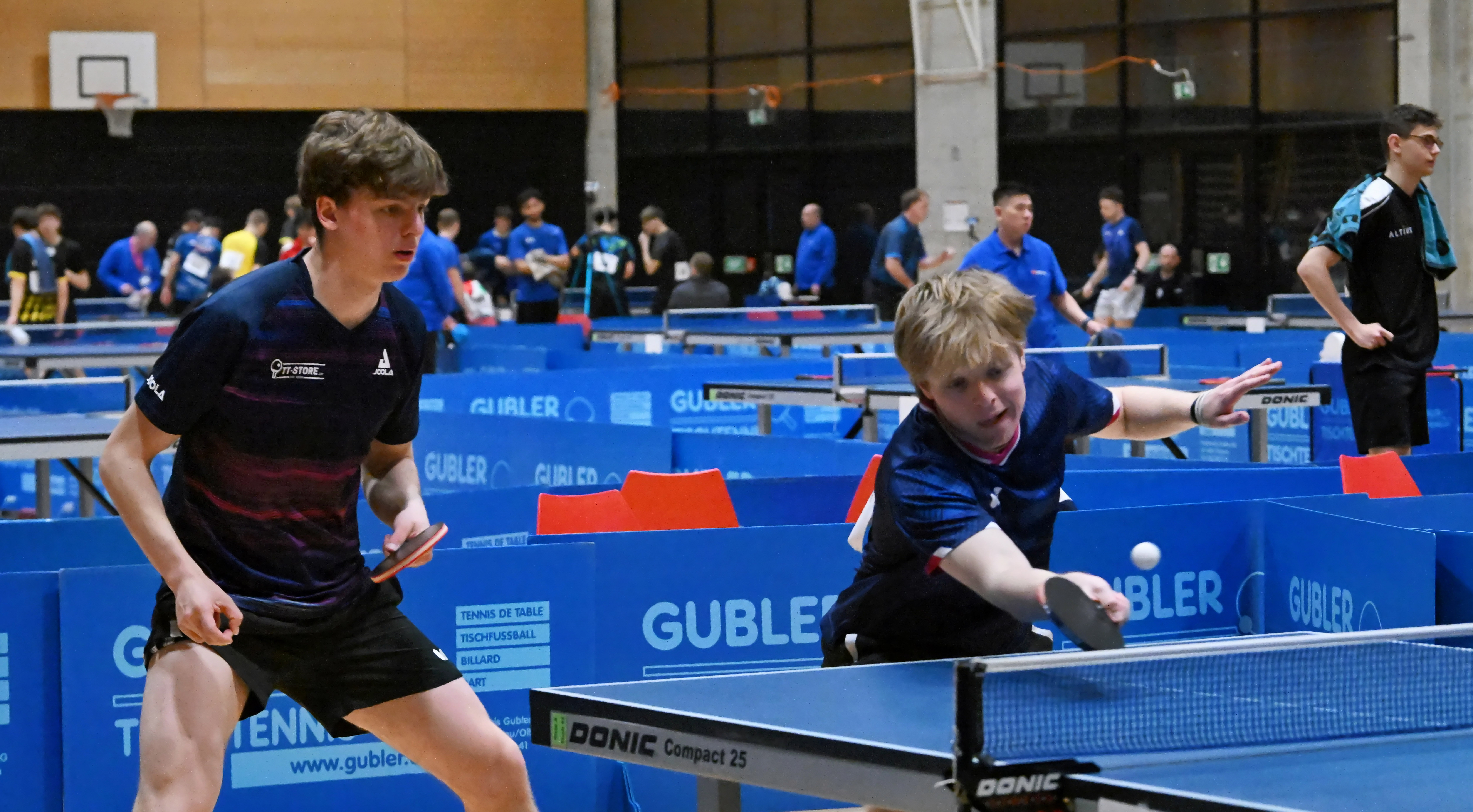 Im Damen Doppel kämpften Ilvi und Akhyata gegen die zwei Dominatorinnen Moret/Doutaz mit all ihren Mitteln, entschieden den zweiten Satz gar für sich, waren am Ende aber dennoch chancenlos. Besser lief es dagegen nebenan bei den Herren. Barish und Gaël brauchten in ihrem Halbfinale gegen Champod/Stoll längere Anlaufschwierigkeiten, je länger die Partie jedoch dauerte, desto deutlicher wurde es, wie sehr die beiden das Spiel gegen Verteidigung beherrschen. 3-1 lautete das Verdikt zugunsten der Neuenburger. Nun hatten Noe und Numa im Duell mit Vorherr und Bernhard, ihre jeweiligen ex-Teamkollegen, die Chance auf das vereinsinterne Endspiel. Die amtierenden Vizeschweizermeister spielten deutlich unter ihrem Niveau, schafften es aber zweimal einen Satzrückstand aufzuholen. Der fünfte Durchgang reflektierte die Partei dann standesgemäss. Vorherr/Bernhard legten vor, ehe die Jungstars eine Aufholjagd starteten und beim Stand von 8-9 nur noch drei Punkte vom Ziel (und dem garantierten Titelgewinn für YSZ) waren. Vor einem Jahr hatten Barish und Gaël dieselbe Anzahl Ballwechsel vom Traumfinal gefehlt, diesmal erging es Noe und Numa leider gleich. So verpassten die Jungstars das Endspiel und mussten sich diesmal mit Bronze begnügen.